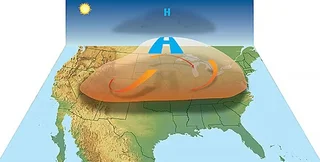 По словам исследователей, за этой волной тепла стоит погодное явление, известное как тепловой купол. Речь идет о системе высокого давления, которая сегодня "припарковалась" над Штатами — именно она улавливает теплый воздух и не дает проникнуть прохладному морскому. Все это напоминает "кипящую кастрюлю" с закрытой крышкой — высокое давление толкает теплый воздух вниз к земле и еще больше нагревает его, сжимая.