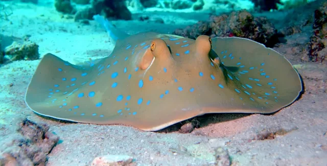 Исследователи изучили кожу ленточнохвостого ската, чтобы понять, как на их коже появляются ярко-синие горошины.