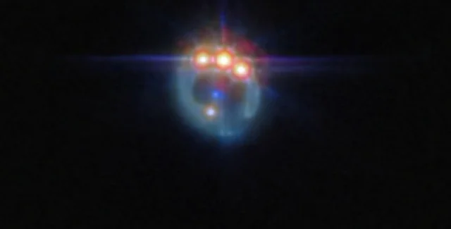 Телескоп Уэбб использовал эллиптическую галактику в качестве линзы, которая своей гравитацией усилила и исказила свет, исходящий от далекого квазара RX J1131-1231. Из-за того, что свет путешествует по космосу в разных направлениях, на новой снимке виден один и то же квазар, но несколько раз и в разном виде.