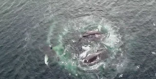 Киты закручивают водную спираль и выдувают пузыри: ученые объяснили, зачем (видео)