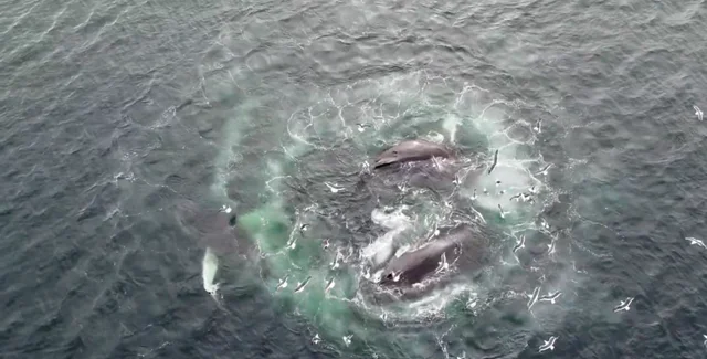 Такая хитрость позволяет китам собирать криль и рыбу в своеобразную ловушку. Обычно в пузырьковых охотах участвуют от нескольких до 20 особей.