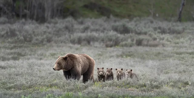 Родительство в животном мире может быть очень утомительным — животным часто приходится жертвовать собой, чтобы взрастить потомство. Например, самки-осьминоги не могут питаться, пока присматривают за яйцами, а некоторые животные вынуждены заботиться о детеныша в одиночку. Однако в Йеллоустонском национальном парке ученые заметили нечто очень необычное — самку медведя гризли с невероятным количеством детенышей, пишет IFLScience.