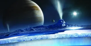 На ледяном спутнике Сатурна ученые также обнаружили воду. Ледяные гейзеры на поверхности Энцелада выбрасывают воду и лед в космос. Считается, что эта вода выходит из подземного океана и космический аппарат "Кассини" выяснил, что скорость выброса составляет примерно 1300 км/ч.