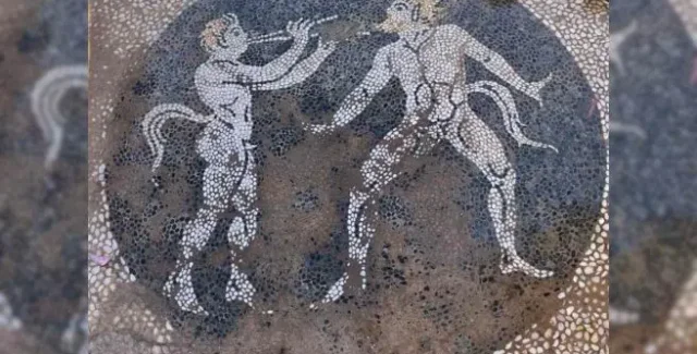На греческом острове Эвбея археологи обнаружили древнее сооружение с мозаикой, изображающей двух сатиров. Это место, которое когда-то было пиршественным залом, в раннехристианскую эпоху превратилось в кладбище.