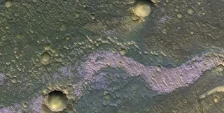 Ученые говорят, что фиолетовый цвет "русалка" приобрела из-за богатых хлором минералов. Отложения хлорида проявляются в виде отчетливого фиолетового оттенка на цветных инфракрасных снимках орбитального аппарата. Эти соленые отложения указывают на наличие воды, которой когда-то было очень много на поверхности Марса.
