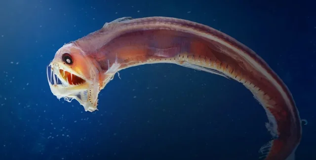 В океане обитает экстремально зубастая рыба — ее зубы считают рекордно большими в сравнении с ее головой.