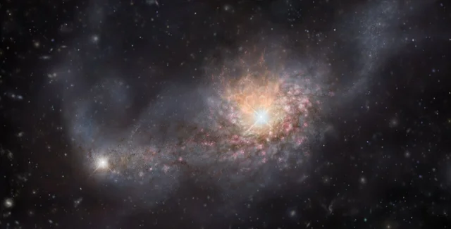 Ученые обнаружили две галактики в ранней Вселенной, которые находятся в процессе слияния. Оно приведет к созданию сверхяркой галактики-монстра.