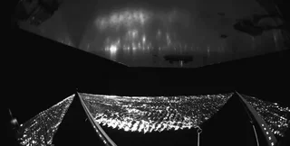 В нижней части снимка, сделанного одной из камер, видна часть солнечного паруса, а в вверху — поверхность солнечной панели, которая дает энергию аппарату. Объекты на снимке имеют немного искаженную форму из-за широкоугольного поля зрения камеры.