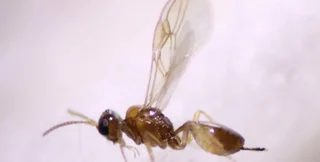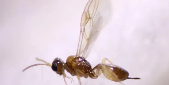 В ходе исследования ученые намеревались проверить плодовых мушек на наличие паразитических червей, известных как нематоды, однако наткнулись на нечто более любопытное. Перед ними была личинка осы с острым хвостом внутри брюшка одной из мух.