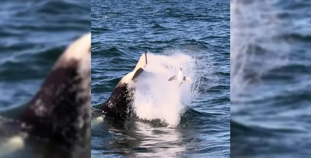 На кадрах видно, как взрослые особи китообразных демонстрируют всевозможные виды поведения: хлопают хвостами по воде, выпрыгивают, а также выбрасывают некоторых морских птиц из воды. По словам команды исследователей, наблюдавшей за активностями животных — на кадрах косатки Бигга.