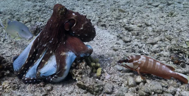 Работают сообща. Осьминоги кооперируются с рыбами для охоты, но иногда "бьют в спину" (видео)