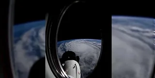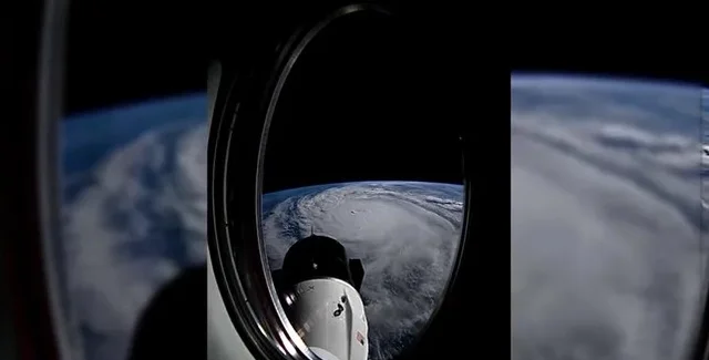 Увеличенный вид урагана Милтон, увиденный Мэтью Домиником из иллюминатора капсулы SpaceX Crew Dragon Endeavour