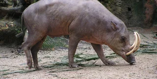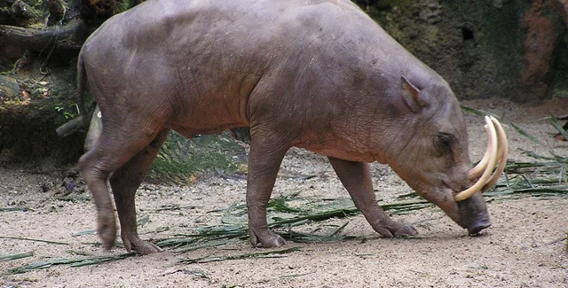 Кстати, в отличие от других членов семейства свиней, у бабирусс нет толстой ростральной кости в морде, что означает, что их морды слишком слабы, чтобы рыть твердую землю.
