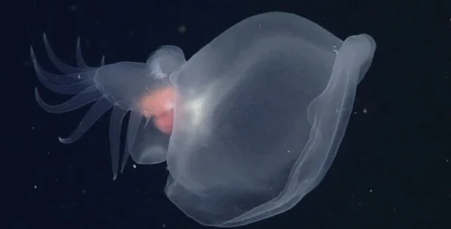 Исследователи также отмечают, что странный моллюск также является первым в своем роде светящимся морским существом в сумеречной зоне океана. Научное название вида Bathydevius caudactylus и впервые о нем стало известно в 2000 году, когда ученые заметили моллюска с помощью дистанционно управляемого аппарата (ROV) во время погружения у залива Монтерей в Калифорнии.