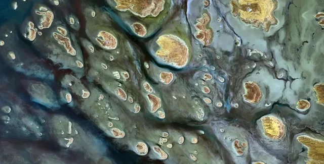 Исследователям удалось обнаружить эфемерное озеро, усеянное десятками золотых островов, благодаря снимку спутника.