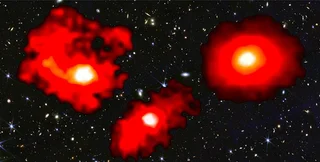 Из-за того, что три очень массивные галактики имеют в своем составе много пыли, она придает им отчетливый красный оттенок, а потому астрономы назвали эти объекты "красными монстрами"