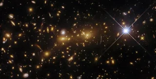 В качестве гравитационной линзы, через которую прошел свет от самых ранних галактик, была галактика Abell S1063, расположенная гораздо ближе к телескопу Уэбб. Гравитация этой галактики значительно усилила свет очень далеких галактик, а потому они стали видимыми для телескопа.