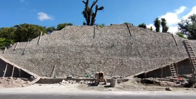 Это место состоит из пяти отдельных секторов и по меньшей мере десяти курганов, датируемых от эпиклассического периода (650-950 гг. н. э.) до позднего постклассического периода (1350-1519 гг. н. э.). Во время раскопок удалось обнаружить 155 артефактов, в том числе керамику, ракушки и каменные инструменты, а также такие материалы, как известь, уголь и обугленное дерево. Чтобы защитить и сохранить пирамиду, построили 43-метровую стену из кирпичной кладки, а само сооружение повторно похоронили.