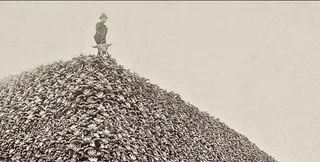 Фрагмент фотографии мужчин, стоящих с грудой черепов буйволов