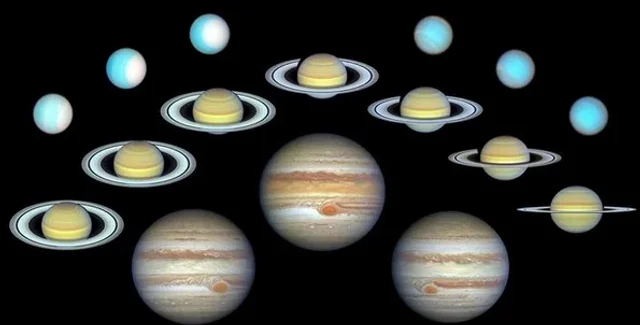 В течение последних 10 лет ученые из NASA получали с помощью космического телескопа Хаббл подробные изображения долгосрочных изменений в атмосфере четырех планет-гигантов Солнечной системы: Юпитера, Сатурна, Урана и Нептуна. Эти данные позволили астрономам наблюдать за погодными условиями и сезонами этих планет, чтобы лучше понять их динамику и изменения с течением времени.