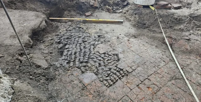 Открытие произошло, когда археологи получили доступ к месту, чтобы изучить его перед дальнейшим строительством. Исследуя территорию, они обнаружили остатки древнего кафельного пола, который дополнили фрагментами костей.
