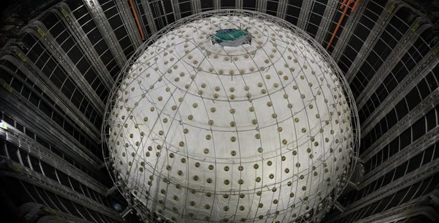 В центре детектора, расположенного на глубине 700 метров под землей, находится акриловая сфера шириной около 35 метров. Она будет заполнена 20 000 тонн воды. Китайские физики говорят, что это самый большой нейтринный детектор подобного рода в мире. Сфера покрыта датчиками, которые смогут обнаружить любые возмущения жидкости внутри, потому что именно эти движения содержат доказательства прохождения нейтрино.