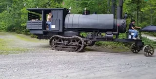 В американском городке Брэдли, штат Мэн, реставраторы показали уникальную паровую машину начала 20-го столетия, которую использовали как своеобразный поезд-вездеход. Соответствующий ролик был размещен на популярном сервисе ViralHog в Youtube.