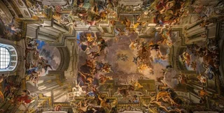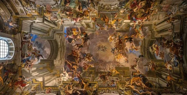 Расписанный между 1688 и 1694 годами Андреа Поццо, потолок церкви Святого Игнатия Лойолы является примером иллюзионистического искусства. В центре сцены святой Игнатий возносится на небо, окруженный изображениями ангелов, святых и аллегориями миссионерской работы иезуитов на континентах. Оптическая иллюзия создает впечатление безграничного открытого неба.