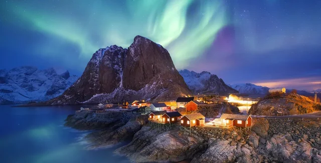 Северное сияние освещает полярную ночь на Лофотенских островах, Норвегия | Фото: Shutterstock