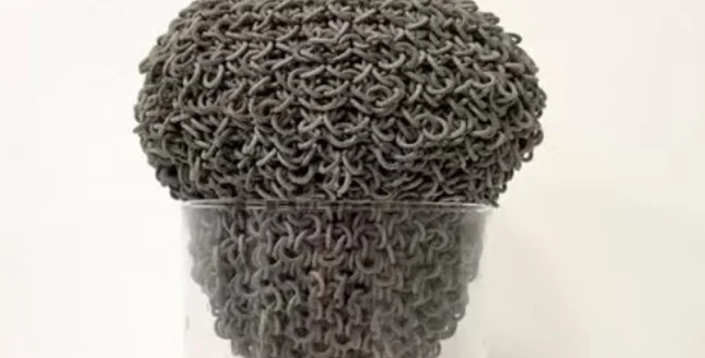 Ученые создали не совсем жидкую, и не совсем твердую форму материи, под названием поликатенированный архитектурный материал (ПАМ). Если говорить очень просто, то он представляет собой наборы взаимосвязанных звеньев, структурированных как кольчуга.
