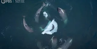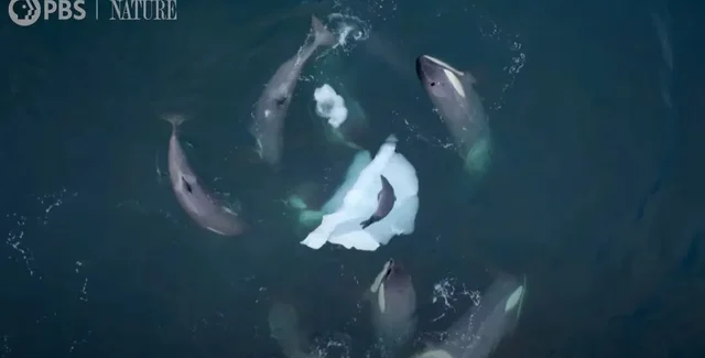 Ученые также записали крики косаток во время охоты: ученые считают, что киты с помощью звуков ищут добычу, координируют охоту и делятся добычей. Хикмотт отмечает, что обучающая последовательность подчеркивает культурную передачу знаний между косатками и показывает их способность решать сложные проблемы посредством командной работы.