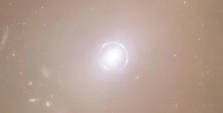 По словам астрономов, в данном случае гравитационная линза расположена таким образом, что возникло идеальное кольцо Эйнштейна, что встречается очень редко. При этом в кольце света можно увидеть четыре ярких пятна, которые представляют собой дублирующие изображения далекой галактики.