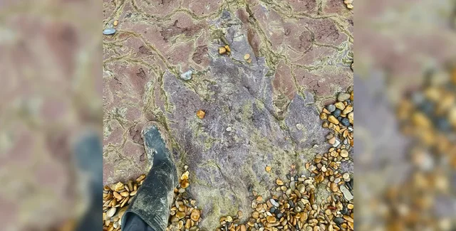 Гид по окаменелостям Джо Томпсон искал окаменелости динозавров на пляже острова Уайт, когда наткнулся на что-то очень любопытное: невероятный фиолетовый трехпалый след динозавра длиной почти в один метр, пишет IFLScience.