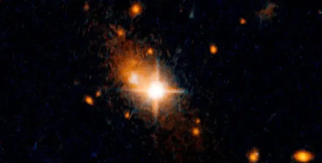 Изначально астрономы наблюдали за далекой галактикой, где находится сверхмассивная черная дыра, с помощью космического телескопа Хаббл. Эта черная дыра поглощает так много материи, что в результате образовала квазар – один из самых ярких источников света во Вселенной. Квазары представляют собой свет, который выходит из аккреционного диска черной дыры, где накапливает и нагревается материя перед падением в черную дыру. То есть сама черная дыра свет не выпускает, но он исходит из ее окрестностей.