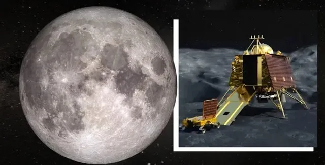 Луна и художественное изображение модуля "Чандрян-3" на ее поверхности | Фото: space.com