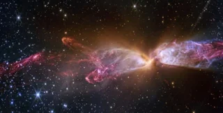Тысячи лет две протозвезды активно обмениваются своим веществом и создают удивительную картину в форме песочных часов.