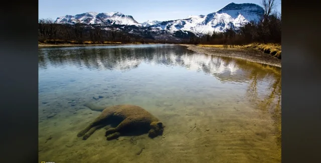 Ученые впервые запечатлели пуму, мирно "спящую" на дне реки: начался процесс окаменения