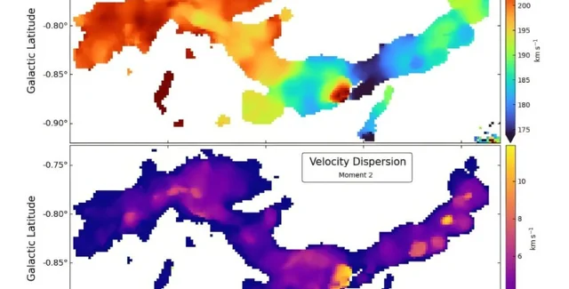 Астрономы обнаружили новое гигантское молекулярное облако в галактике Млечный Путь. Новое облако имеет размер почти 200 световых лет, а его масса оценивается примерно в 160 000 солнечных масс, пишет SciTechDaily.