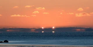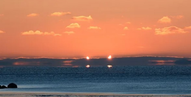 Астрофотографы из Канады, которые хотели запечатлеть частичное солнечное затмение, стали свидетелями редкого двойного восхода Солнца в небе над провинциями Нью-Брансуик и Квебек. На фотографиях видны "солнечные рога", отражения и всевозможные странные виды, когда Солнце поднималось над горизонтом и его частично закрыла собой Луна.