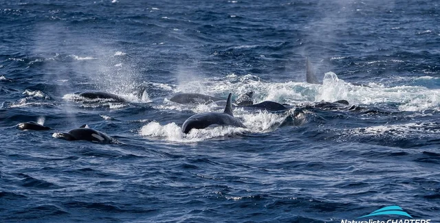 Исследователи отмечают, выпала возможность наблюдать за одним из крупнейших побоищ в океане, когда десятки косаток 40 минут атаковали 18-метрового кита. В конце концов на кадрах видно, что кит проиграл эту битву: морской хищник плавал на поверхности океана, кровь лилась из его пасти, а косатки то и дело набрасывались на свою добычу. Исследователи также добавили, когда судьба синего кита была решена, косатки "отпраздновали это, выпрыгивая и ударяя хвостом".