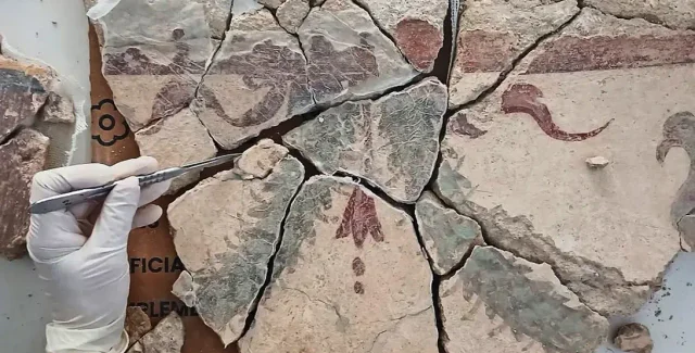 Одной из выдающихся находок является более 4000 фрагментов настенной живописи, обнаруженных в разрушенных комнатах, которые когда-то использовались для развлечений. Как отметили исследователи, удалось частично воссоздать оригинальные изображения. На одном панно ученые уже собрали 22 фрагмента из 866, которые изображают растительные гирлянды с птицами.