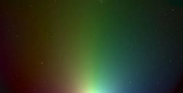 На фотографиях виден зодиакальный свет, который представляет собой слабое рассеянное свечение, создаваемое солнечным светом, который рассеивается частицами пыли в космосе. На одной из фотографий, сделанных прибором WFI-2 свечение переходит от красного слева к зеленому в центре и синему справа на фоне звезд.