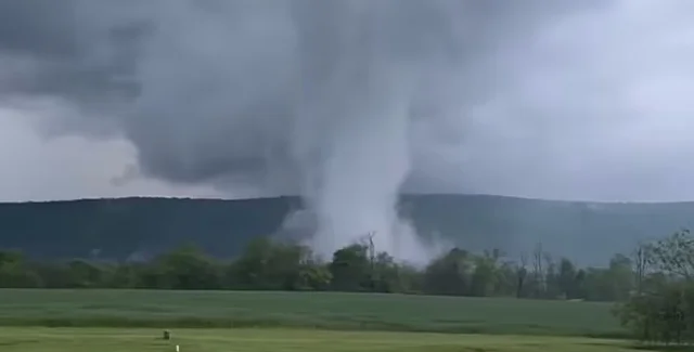 Редкое явление охватило сельскую местность Мэриленда, заставив местных жителей ужаснуться приближающемуся концу света. Зловещее белое облако "судного дня" в форме торнадо вырвалось из огромных темных волн и пронеслось по полю в Термонте, штат Мэриленд (США).