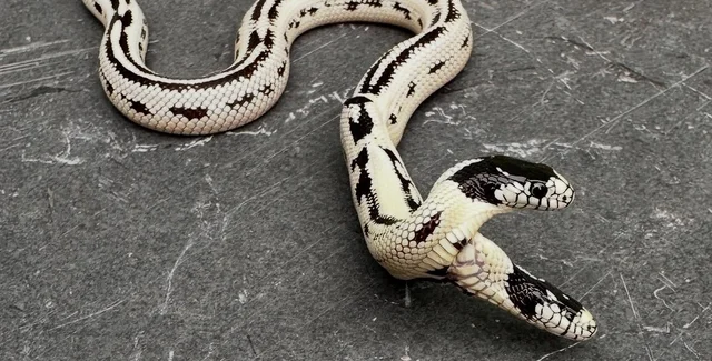 Родившаяся змея представляет собой хороший пример сиамских близнецов, когда два детеныша рождаются сросшимися вместе и имеют отдельные органы. Но в этом случае у змеи, которая успешно живет уже 7 месяцев, один набор функционирующих органов, хотя и две головы. Представители East Bay Vivarium говорят, что вторая голова дышит, оглядывается, щелкает языком и злится, если в нее ткнуть чем-то, но она не ест.