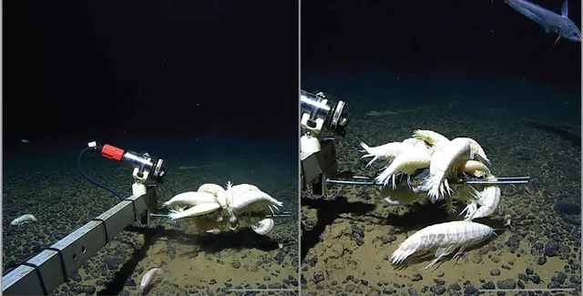 Стая A. gigantea, поедающая приманку на глубине более 6500 метров | Фото: Royal Society Open Science