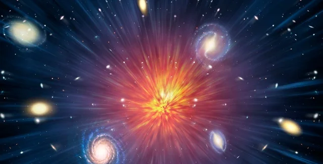 Согласно общепринятой космологической модели, Вселенная возникала 13,8 млрд лет назад в результате Большого взрыва. Изначально существовала бесконечно малая и бесконечно плотная горячая точка, известная как сингулярность, которая быстро расширилась. Важно понимать, что Большой взрыв не был взрывом в привычном смысле. Это было расширение самого пространства, а не распространение материи в уже существующем пространстве. С тех пор Вселенная остыла, но продолжает расширение с ускорением, которое ей придает загадочная темная энергия.