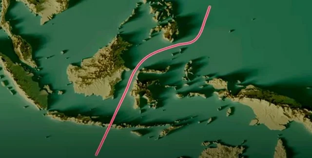 Линия Уоллеса отделяет шельф азиатской части Евразии от шельфа Австралийской тектонической плиты. Это геологическая линия, но она также является климатической и биологической линией.