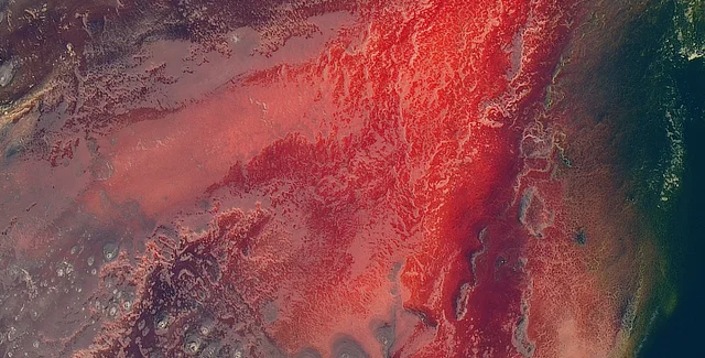 Спутниковый снимок озера Натрон в 2017 году | Фото: NASA