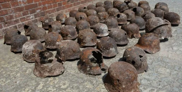 Шлемы преимущественно немецкой модели, в частности типы M35 и M42, которые использовали во время Второй мировой войны, а также шлемы M16 с Первой мировой войны, пишет Arkeonews.
