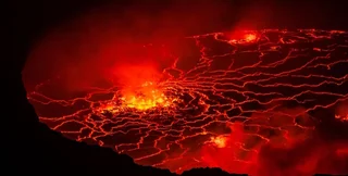 Вулкан Ньирагонго содержит огромное озеро лавы, которое считается самым большим на планете. Еще более любопытным является химический состав лавы, который делает ее предрасположенной к необычайно быстрому движению.